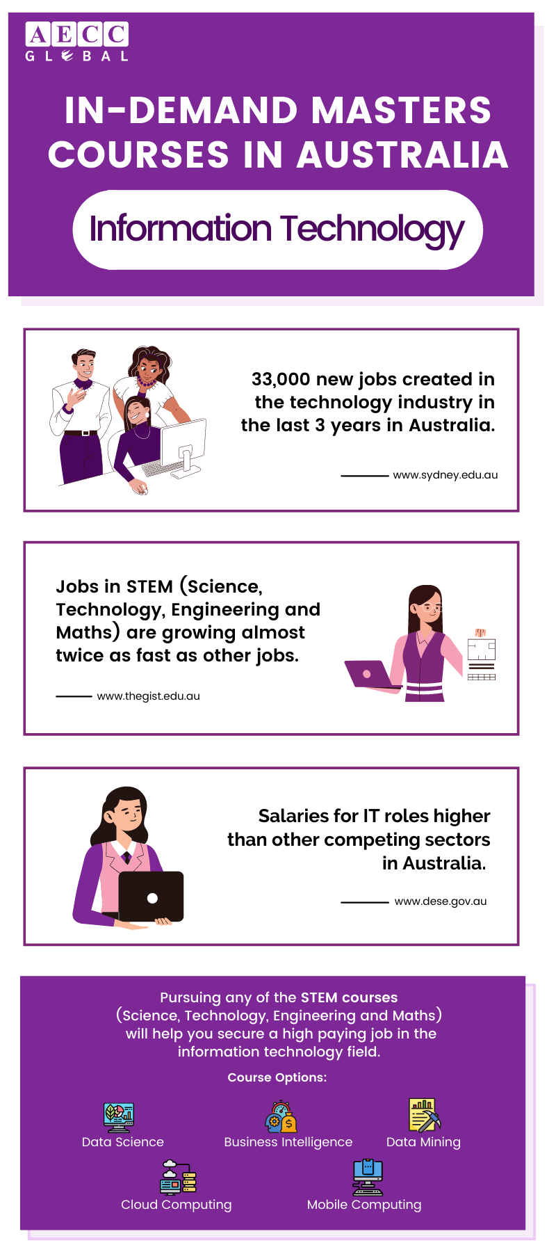 Be part of the modern and developing IT sector with Macquarie University, University Technology of Sydney, and Swinburne University of Technology.